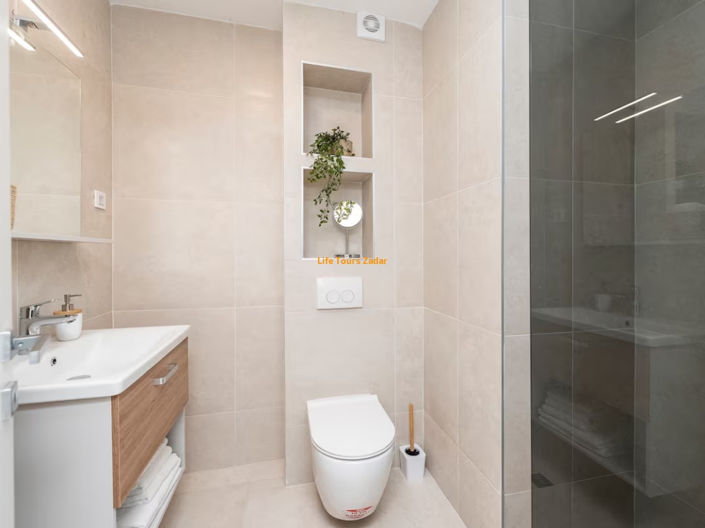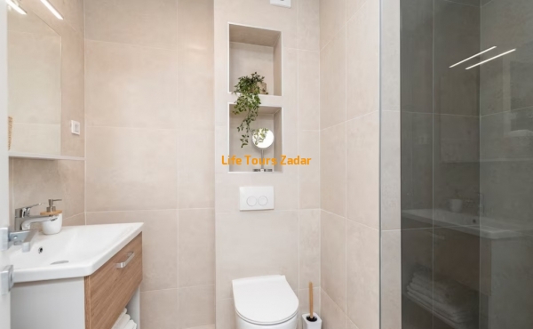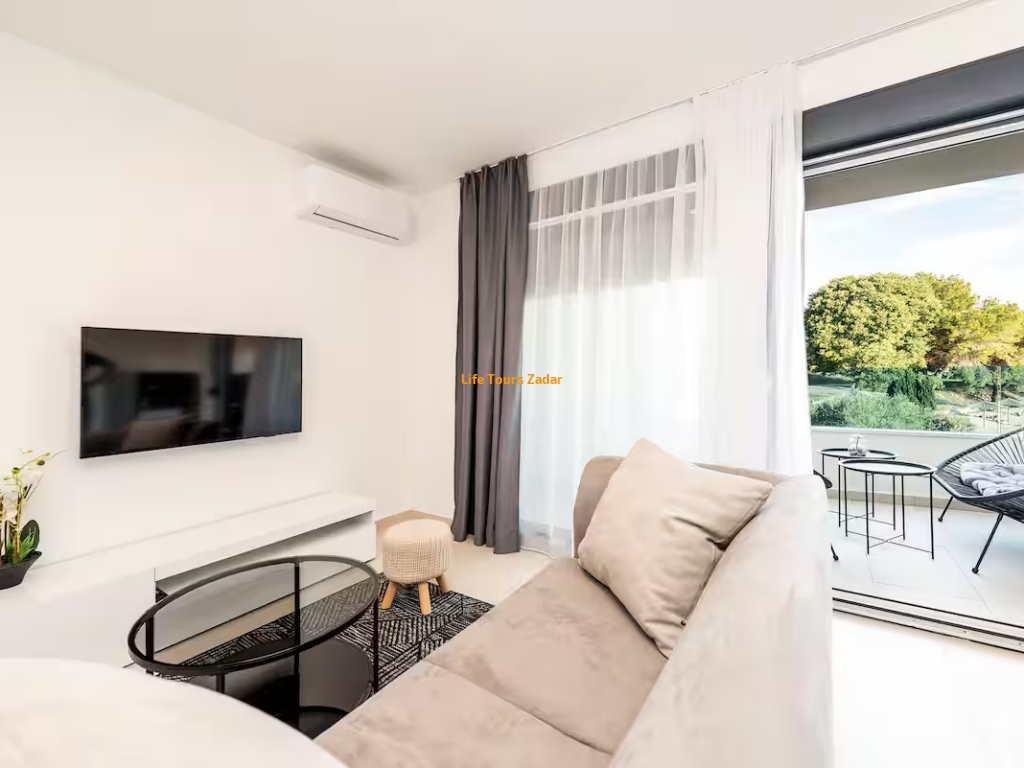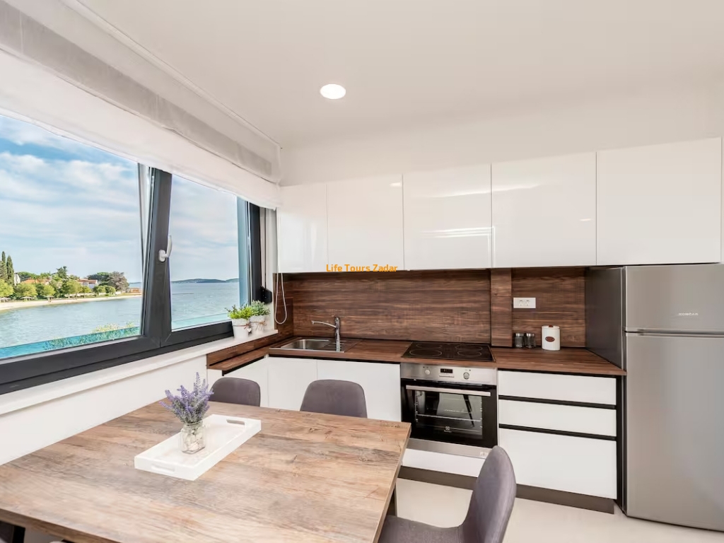 Lukuzan dvosoban apartman ima pristup privatnoj plaži, a samo 3 min pješice nalazi se i druga plaža.